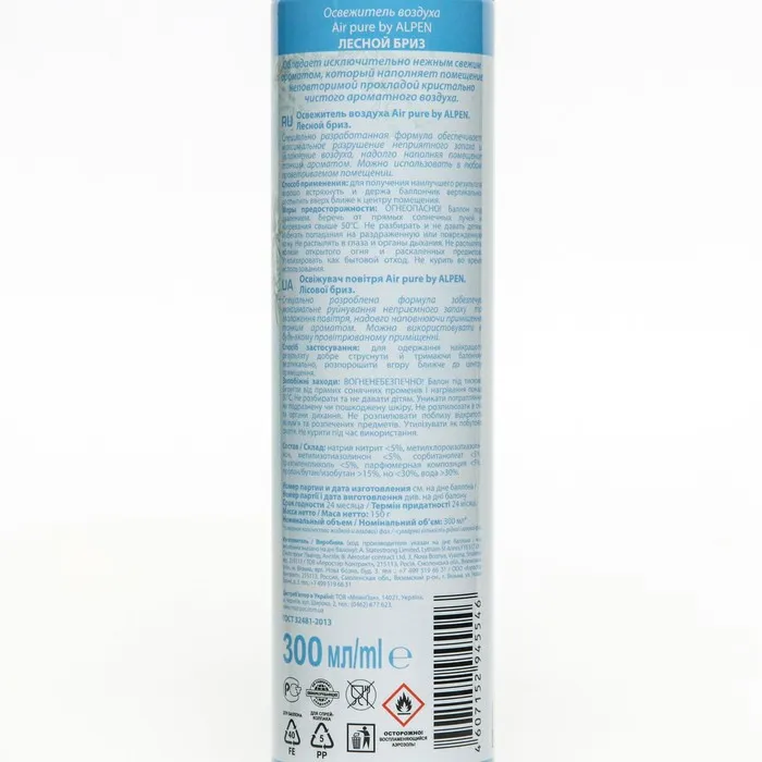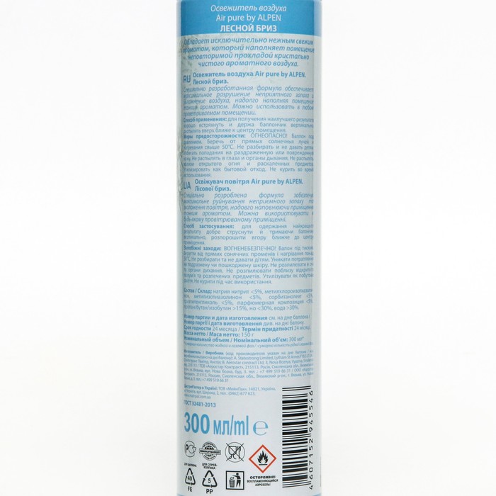 Освежитель воздуха Alpen, Лесной бриз, 300 мл — Характеристики
