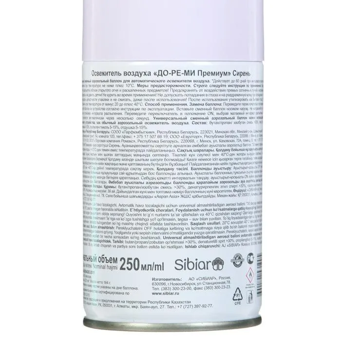 Освежитель воздуха До-Ре-Ми Премиум "Сирень", 250 мл — Характеристики