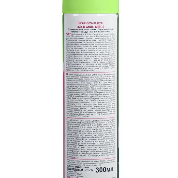 Освежитель воздуха "Голд Винд" 2 в 1 цитрус, 300 мл — Характеристики