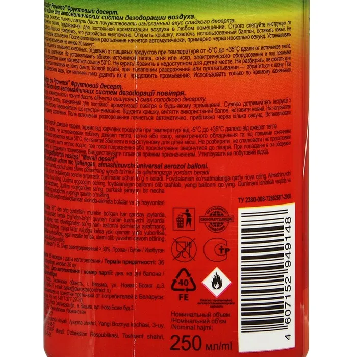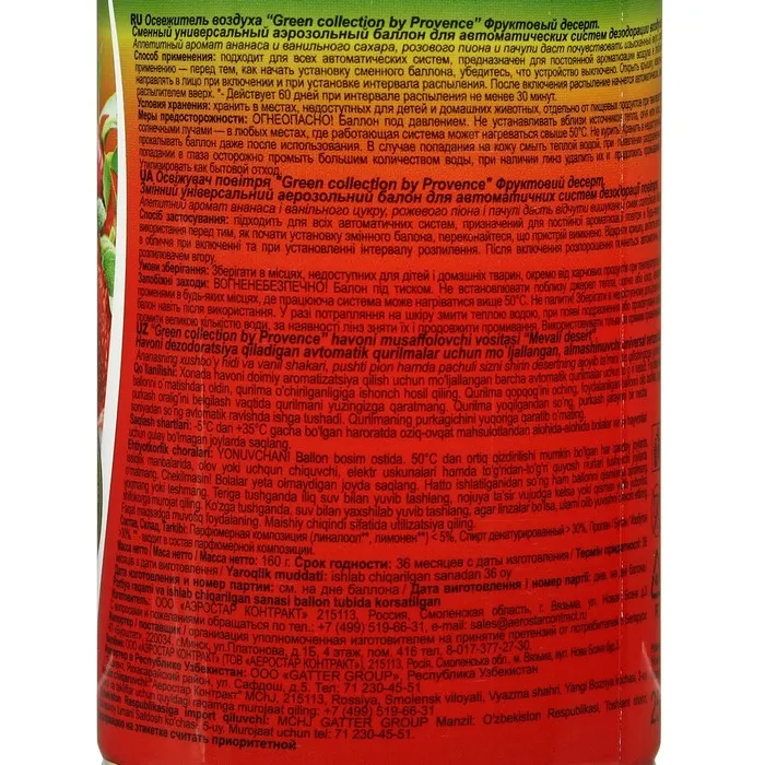 Освежитель воздуха «Green collection by Provence»: «Фруктовый десерт» универсальный сменный баллон — Характеристики