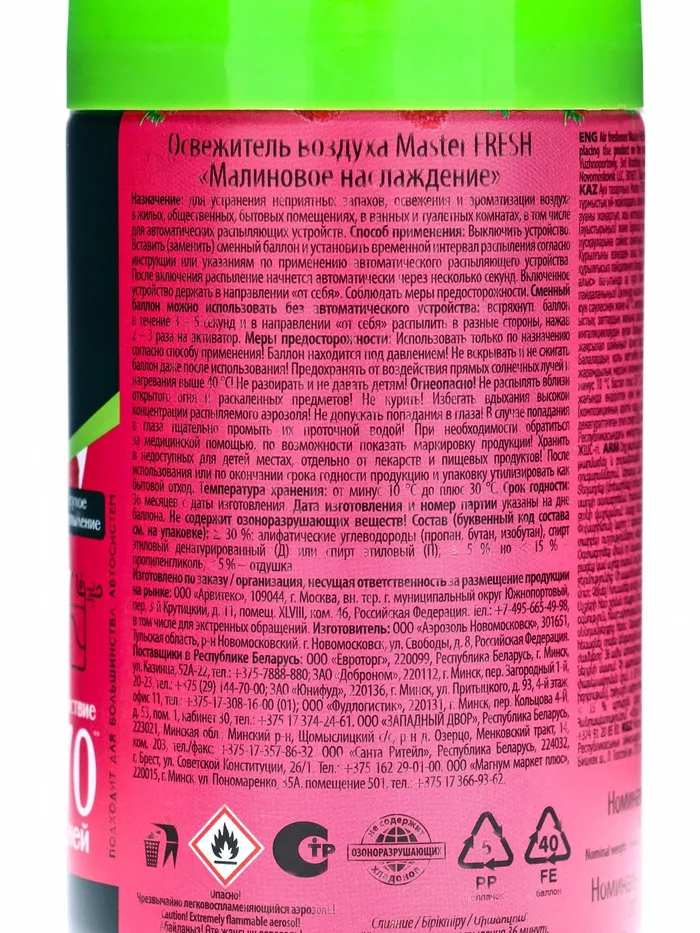 Освежитель воздуха Master FRESH Малиновое наслаждение сменный баллон, 250 мл — Характеристики