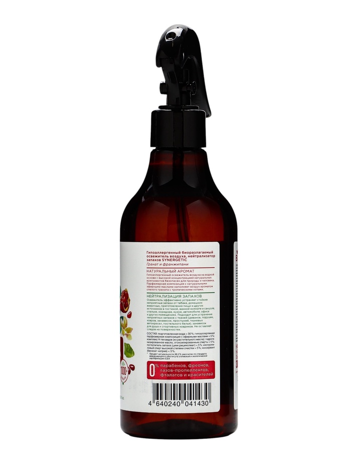 Окунитесь в атмосферу теплых тропиков с освежителем воздуха Synergetic «Гранат и франжипани». Яркий, сочный аромат спелого граната переплетается с нежными, сладковатыми нотами экзотического франжипани, создавая чувственную композицию, которая наполняет дом энергией и уютом.