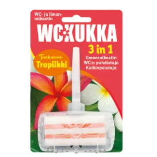 Освежитель для унитаза 3 в 1 Wc Kukka эффективно очищает и освежает унитаз. Предотвращает образование известковых отложений, оказывает антимикробное действие, при каждом смывании придает приятный аромат.
