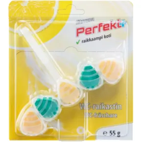 Подвесной освежитель для унитаза Perfekt + создает обильную пену при каждом сливе воды, очищает поверхность унитаза от различных загрязнений. Предотвращает образование известкового налета и водного камня. Освежитель для унитаза Perfekt + устраняет неприятные запахи и препятствует их появлению.