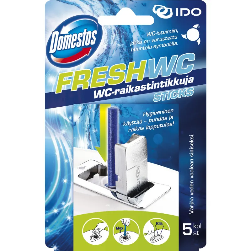Domestos Fresh Ocean освежающие палочки для унитаза разработаны специально для унитазов с символами кнопок смыва IDO. Эти палочки чрезвычайно гигиеничны в использовании и эффективно предотвращают образование известковых отложений, обеспечивая чистоту и свежесть вашего туалета! Продукт обладает свежим морским ароматом. В упаковке пять палочек.