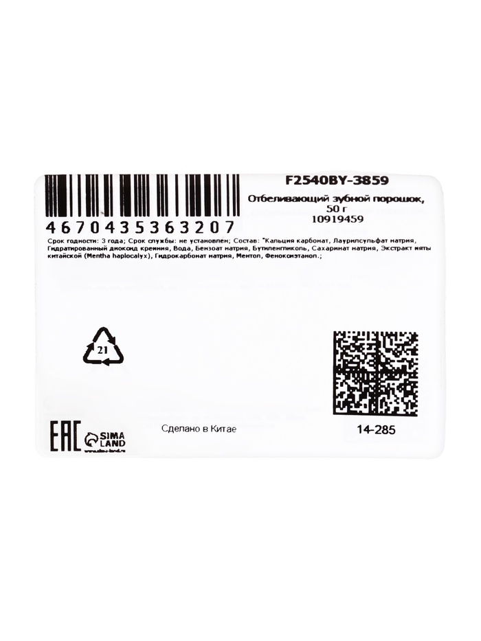 Порошок имеет мягкую абразивную текстуру, которая бережно очищает эмаль, не повреждая её, при этом эффективно борется с поверхностными пятнами. Регулярное использование помогает сохранить естественный цвет зубов, предотвратить образование зубного налёта и поддерживать ощущение чистоты и свежести во рту.