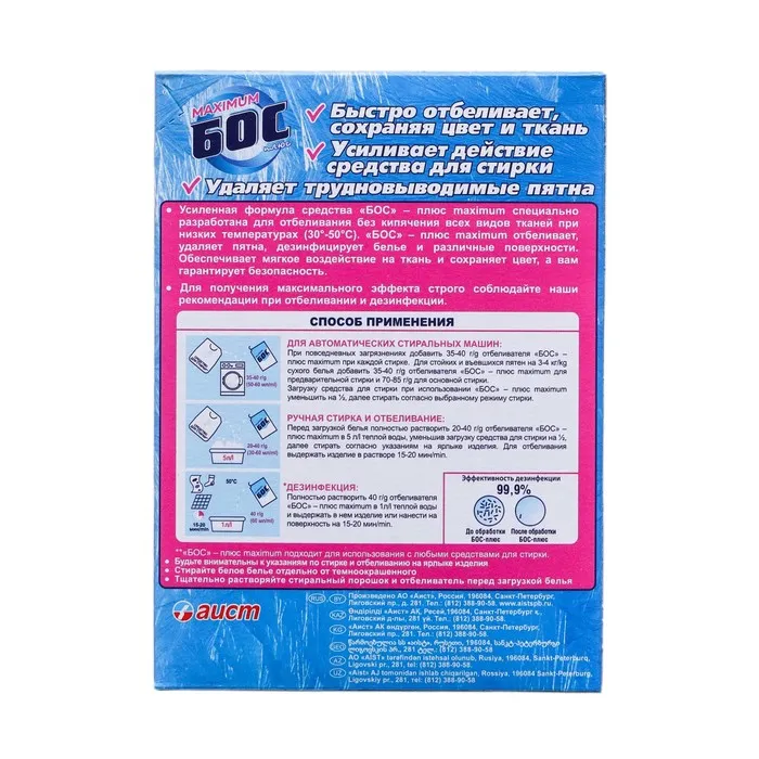 Отбеливатель "Аист" "Бос-плюс" Maximum, порошок, для тканей, 300 г — Характеристики