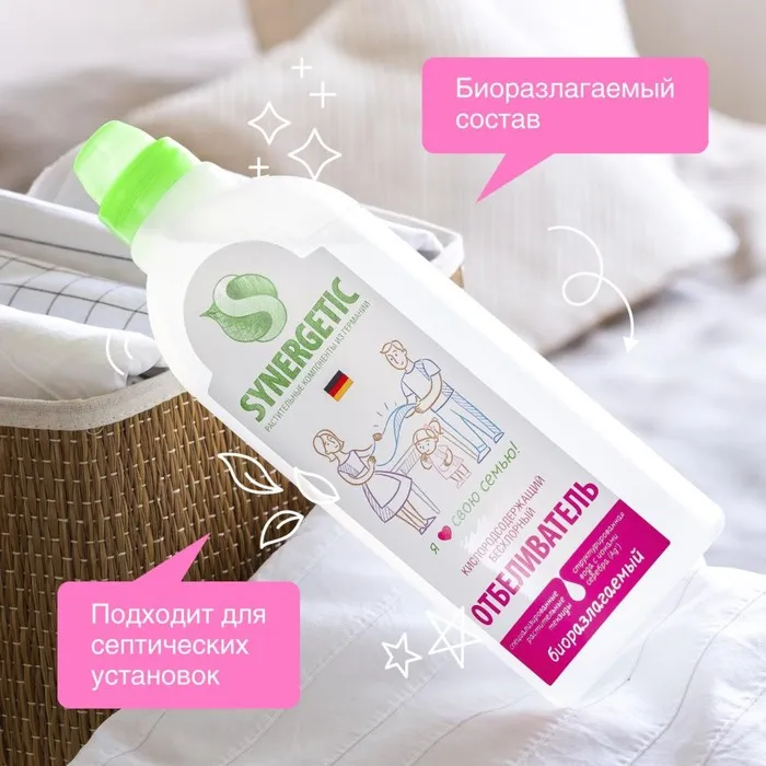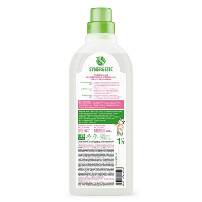 Отбеливатель Synergetic, гель, для белья и поверхностей, 1 л — Характеристики