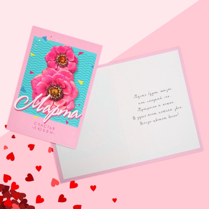 Открытка «8 Марта!», цветы, 12 х 18 см — Характеристики