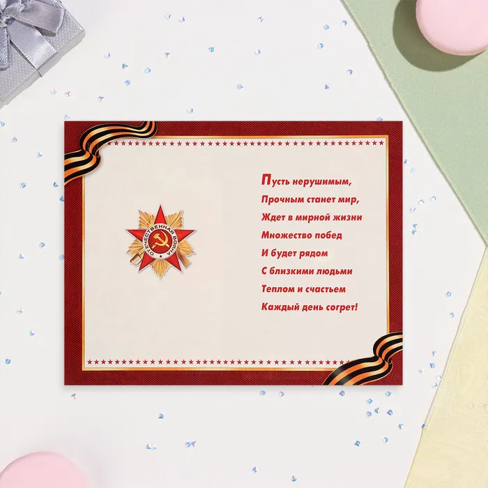 Открытка «9 Мая! С Праздником Победы!» тиснение, конгрев, 12.5×19.5 см — Характеристики