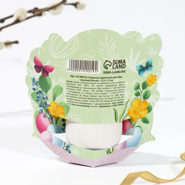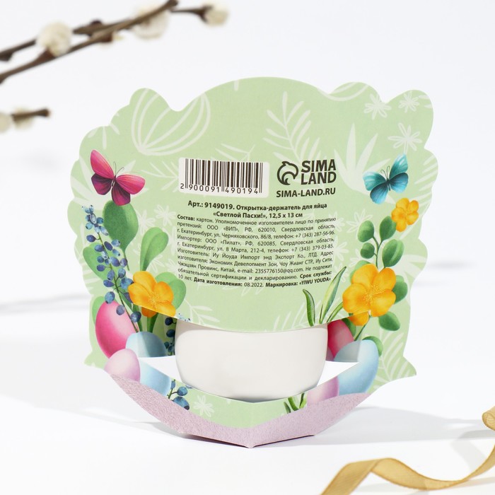 Открытка держатель для яйца «Светлой Пасхи!», 12.7×13 см — Характеристики
