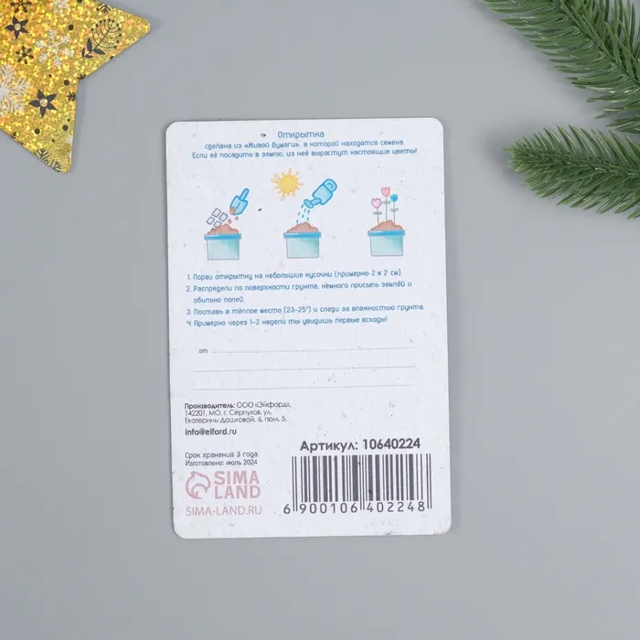 Открытка для выращивания «Арт Узор. Вырасти сам. С Новым годом! Счастья и добра» с семенами, 10×15 см — Характеристики