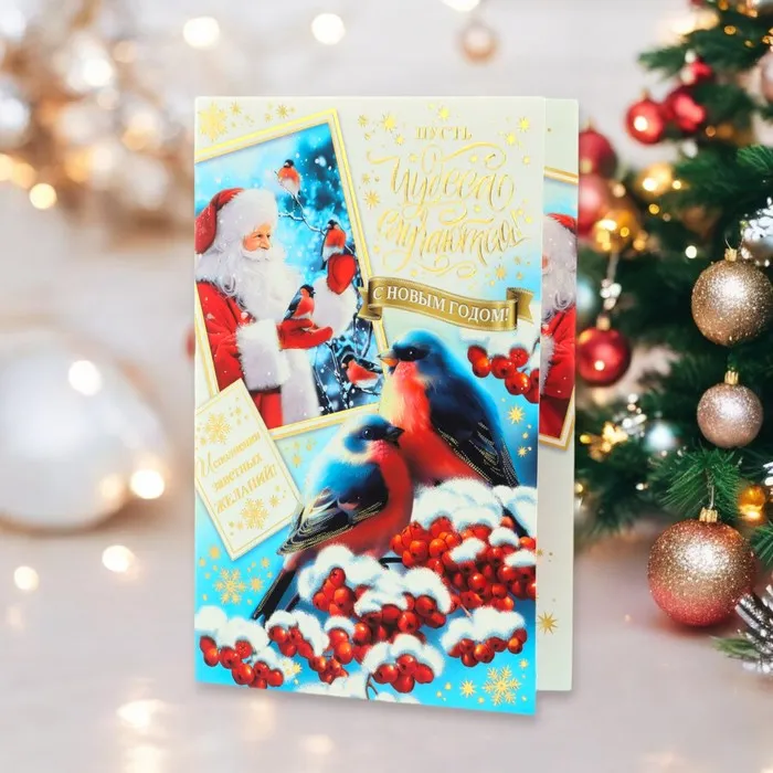 Открытка-евро «С Новым Годом!» конгрев, тиснение, 11×21.5 см — Характеристики