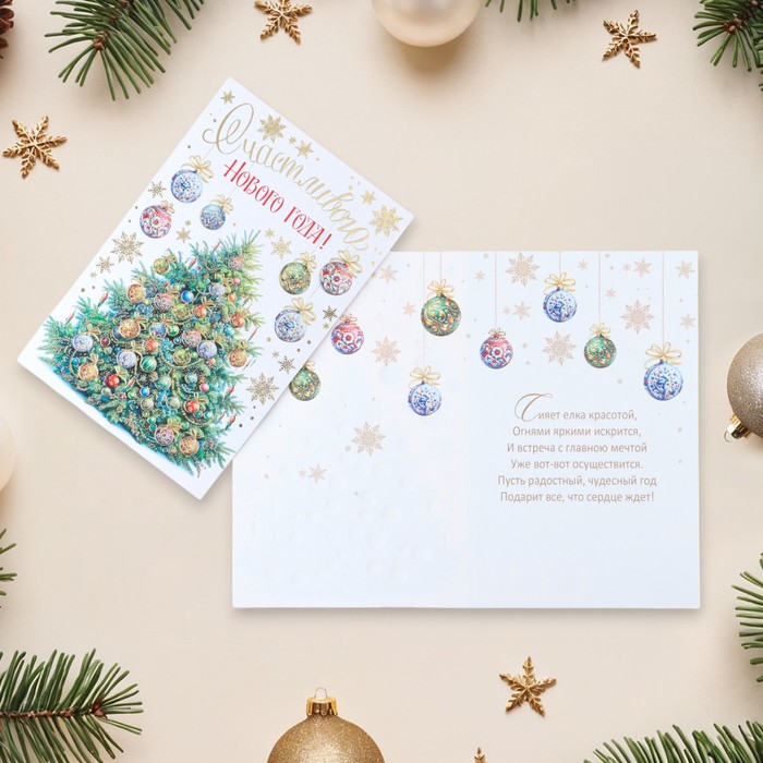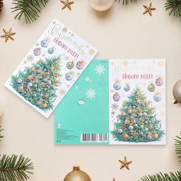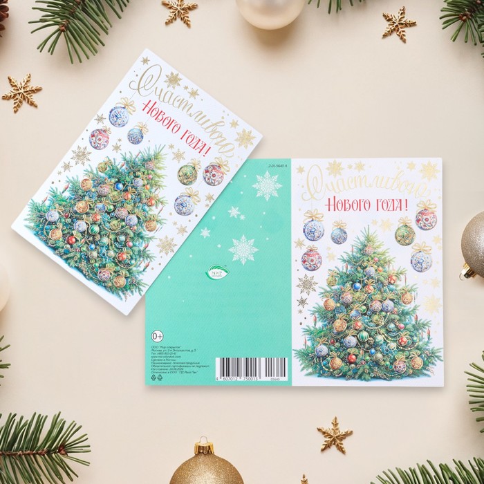 Открытка-евро «Счастливого Нового Года!» конгрев, тиснение, 11×21.5 см — Характеристики