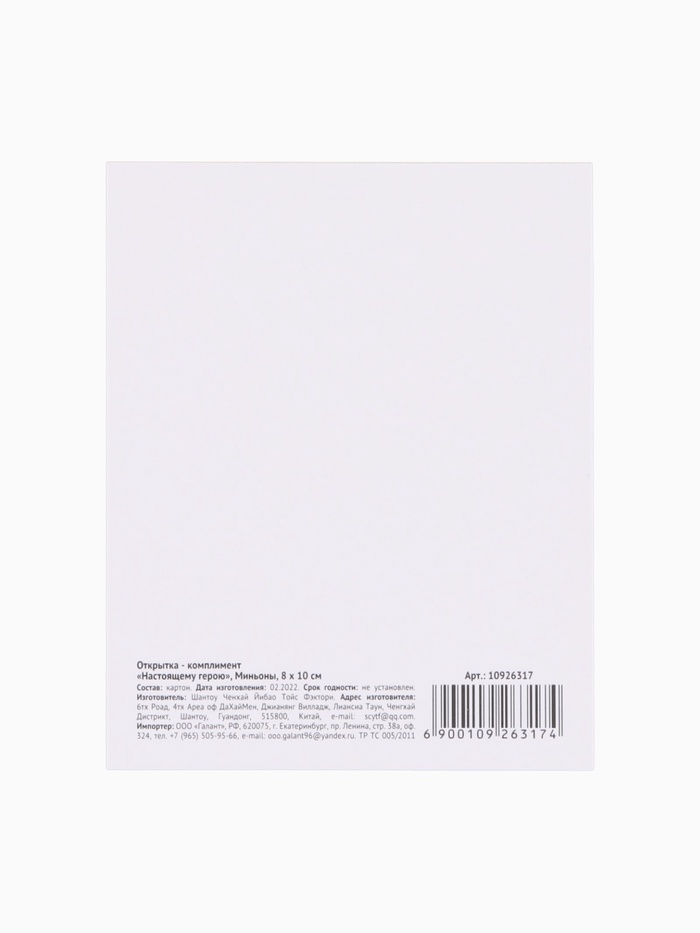 Открытка - комплимент «Настоящему герою», 8×10 см — Характеристики