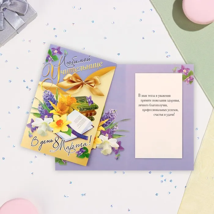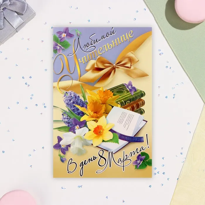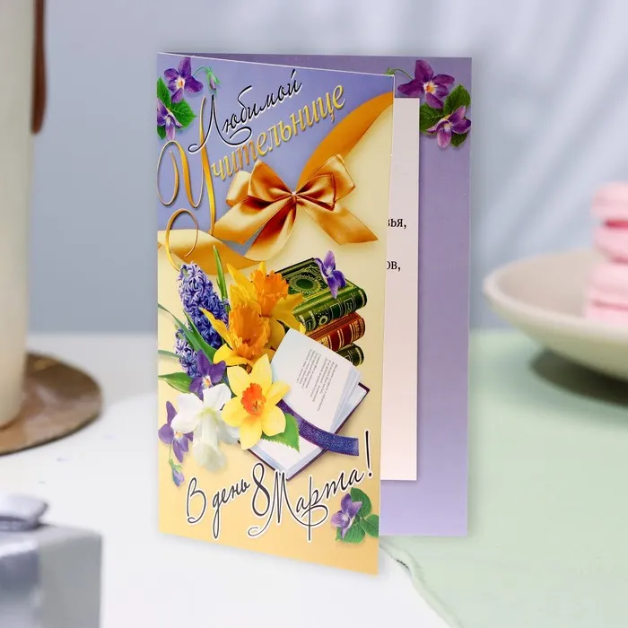 Открытка «Любимой учительнице в день 8 Марта!», А5 — Характеристики