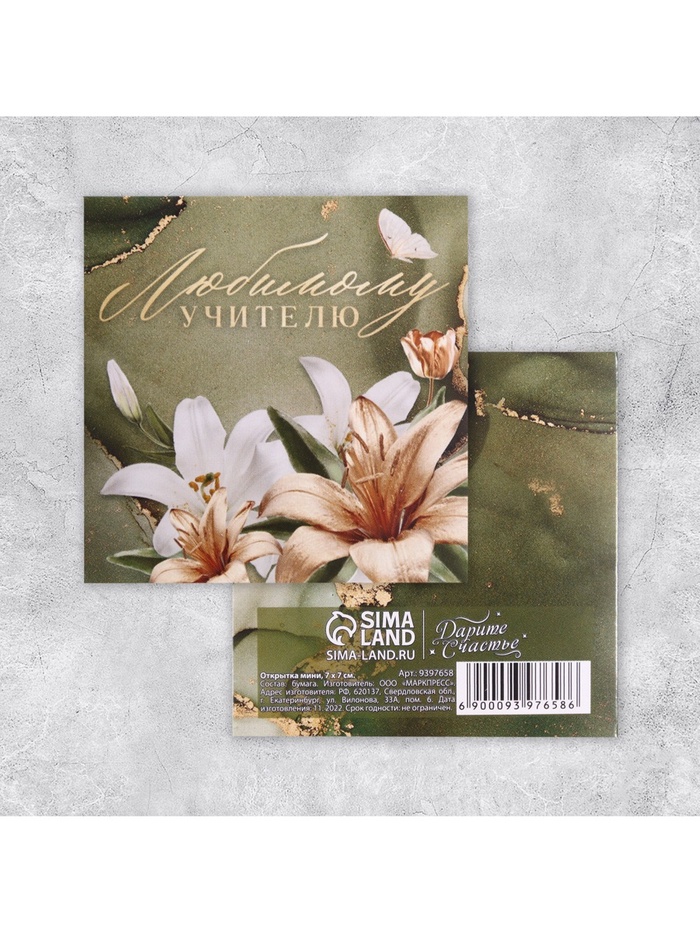 Открытка «Любимому учителю», лилии, 7×7 см — Характеристики
