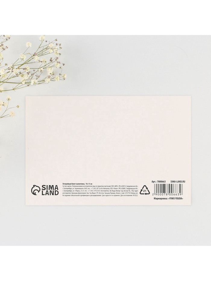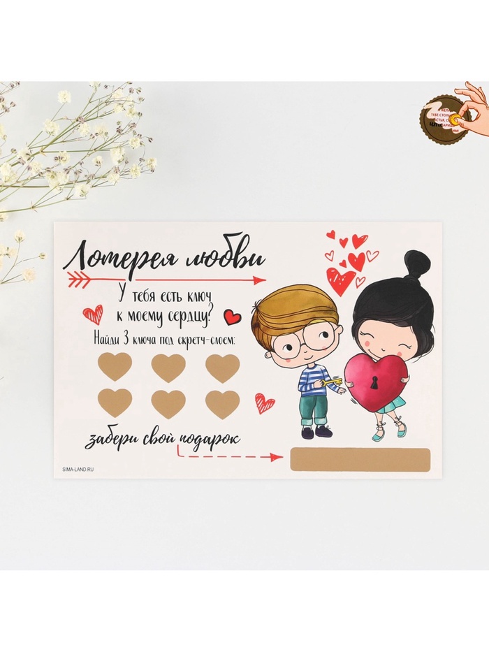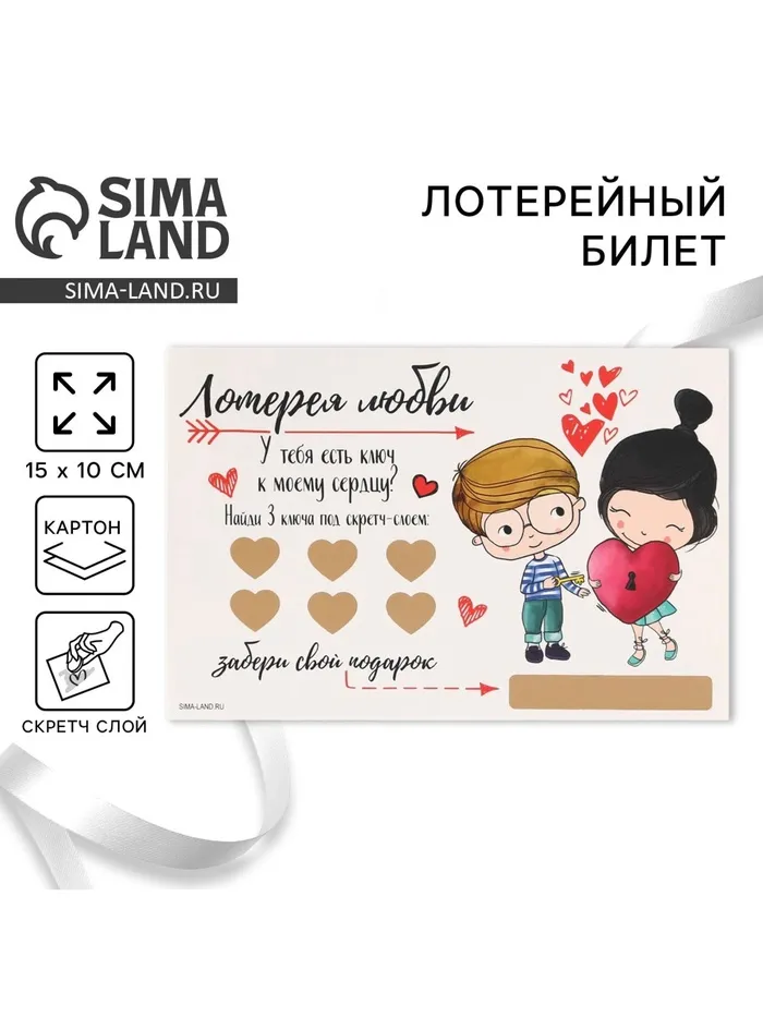 Открытка, лотерейный билет «У тебя есть ключик к моему сердцу», 10 х 15 см. — Характеристики