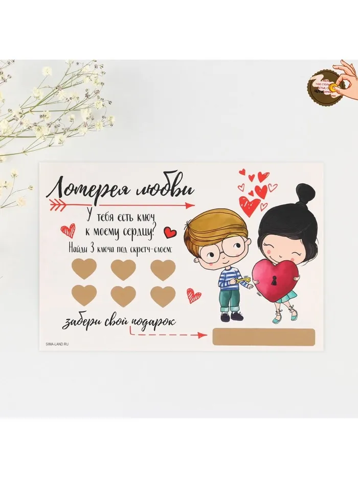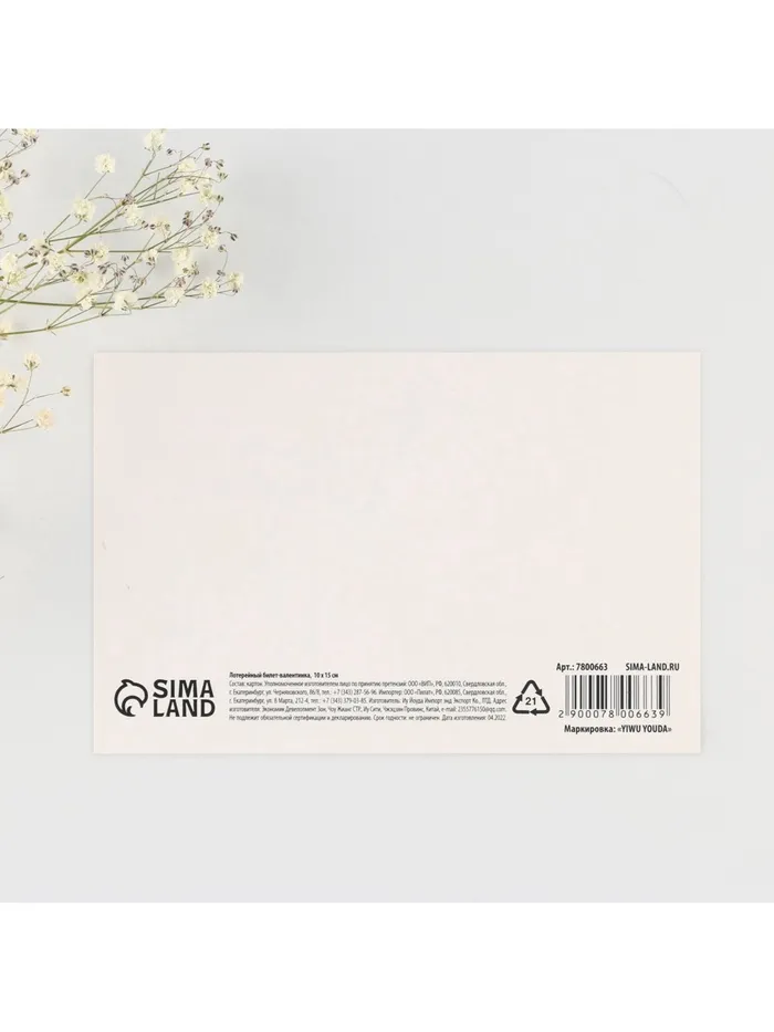 Открытка, лотерейный билет «У тебя есть ключик к моему сердцу», 10 х 15 см.