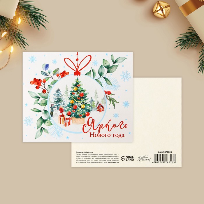 Открытка-мини «Яркого Нового года», 10.7×8.8 см — Характеристики