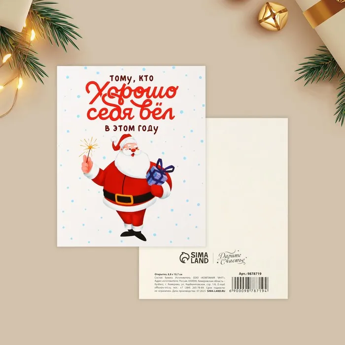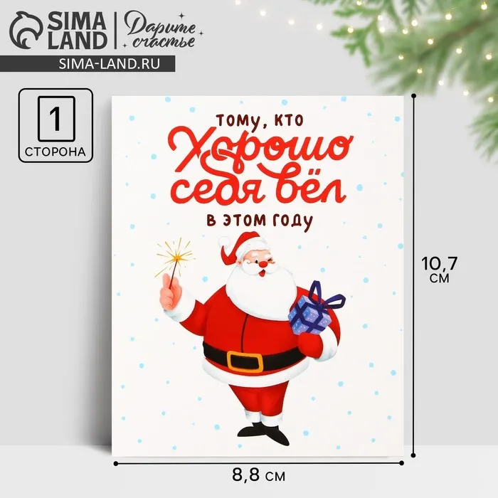 Открытка-мини «Хорошо себя вёл», Дед Мороз 10.7 х 8.8 см — Характеристики