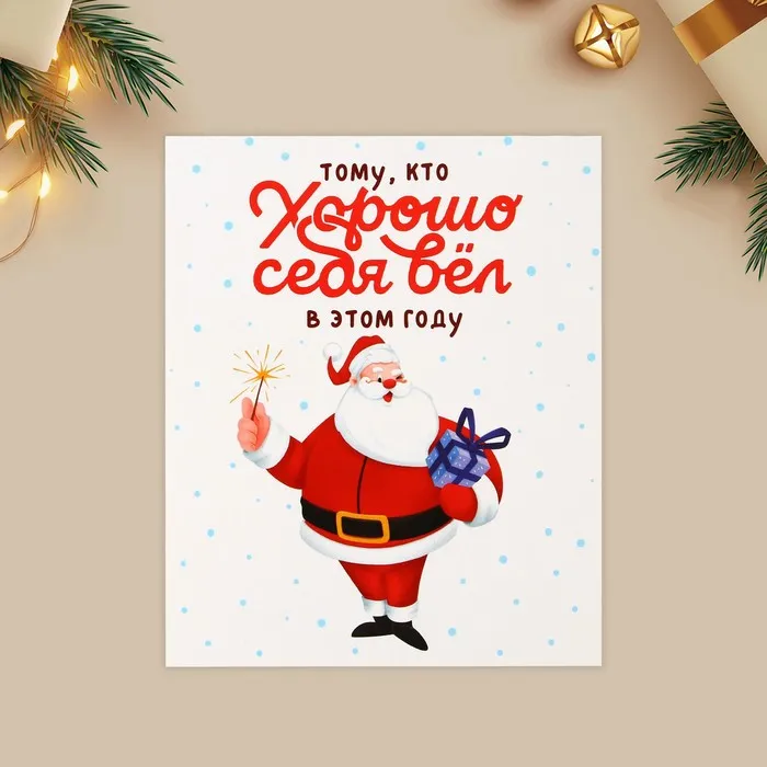 Открытка-мини «Хорошо себя вёл», Дед Мороз 10.7 х 8.8 см