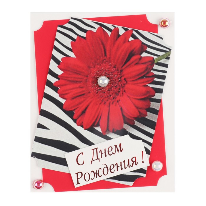 Открытка-мини "С Днём Рождения!" ручная работа, красный цветок