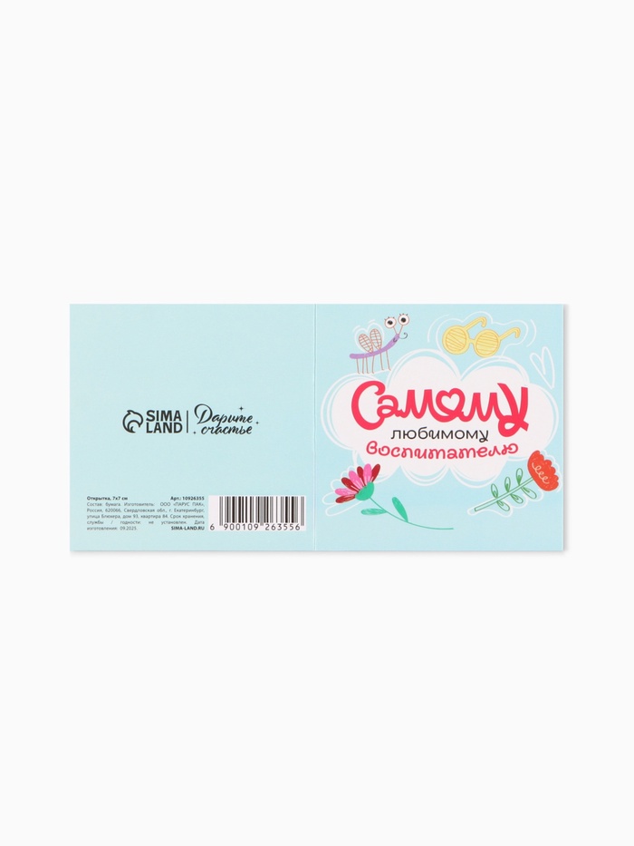 Открытка мини «Любимому воспитателю», 7×7 см — Характеристики