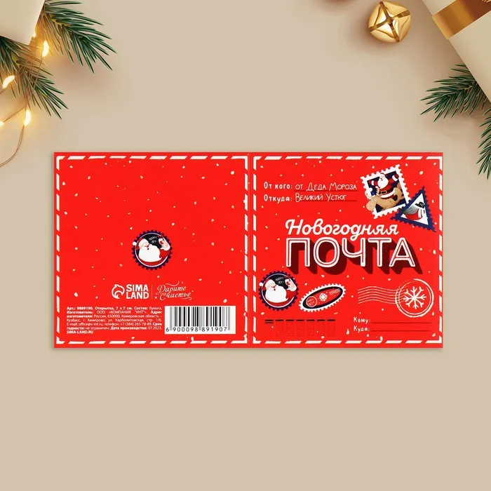 Открытка-мини «Новогодняя почта», Дед Мороз 7 х 7 см — Характеристики
