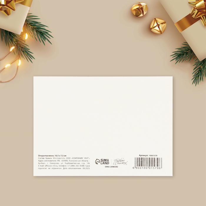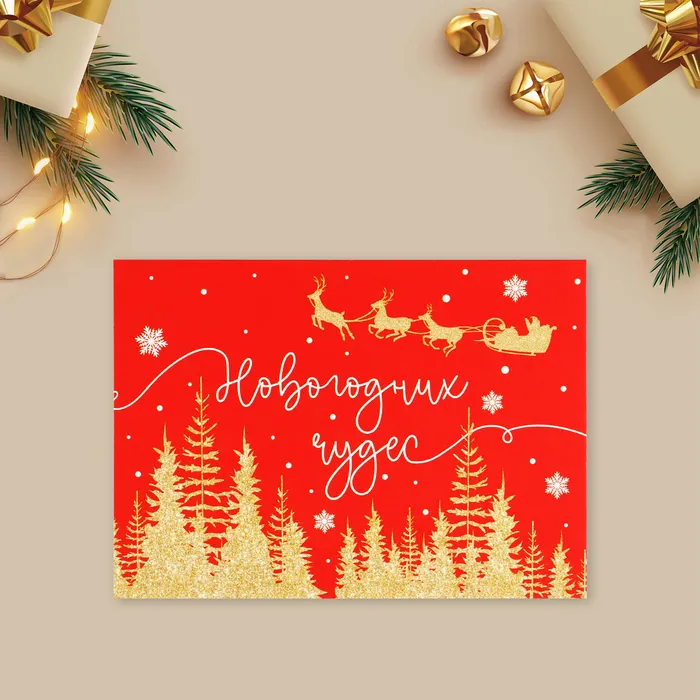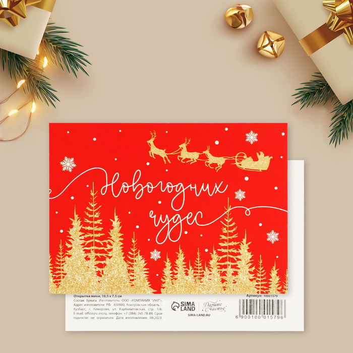 Открытка-мини «Новогодних чудес», сани, 10.5 х 7.5 см — Характеристики