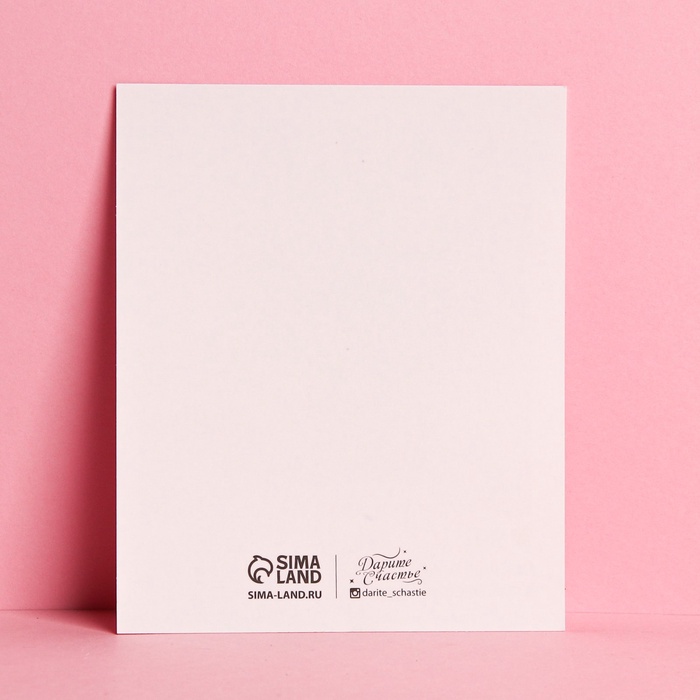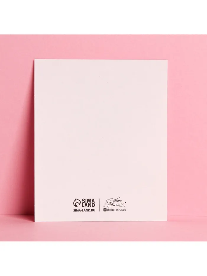 Открытка одинарная, на обороте снизу инфоблок (ШК, производитель), остальное поле белое.