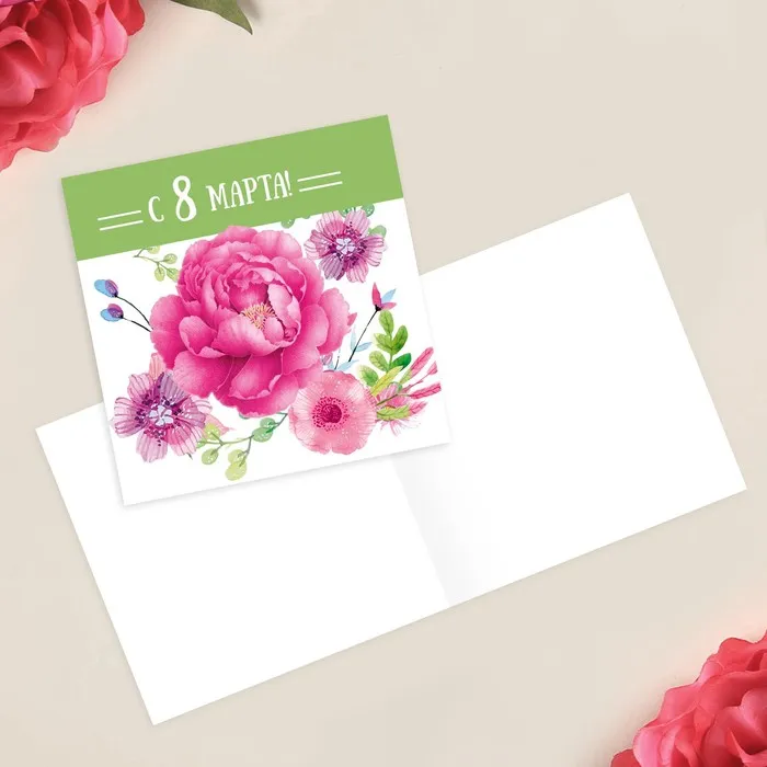 Открытка-мини «С 8 марта», пион, 7 × 7 см — Характеристики