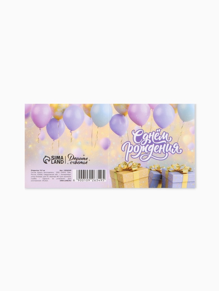 Открытка мини «С Днём рождения поздравляю», 7×7 см — Характеристики
