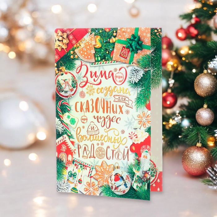 Открытка «Зима создана для сказочных чудес!» глиттер, конгрев, 12.5×19.4 см