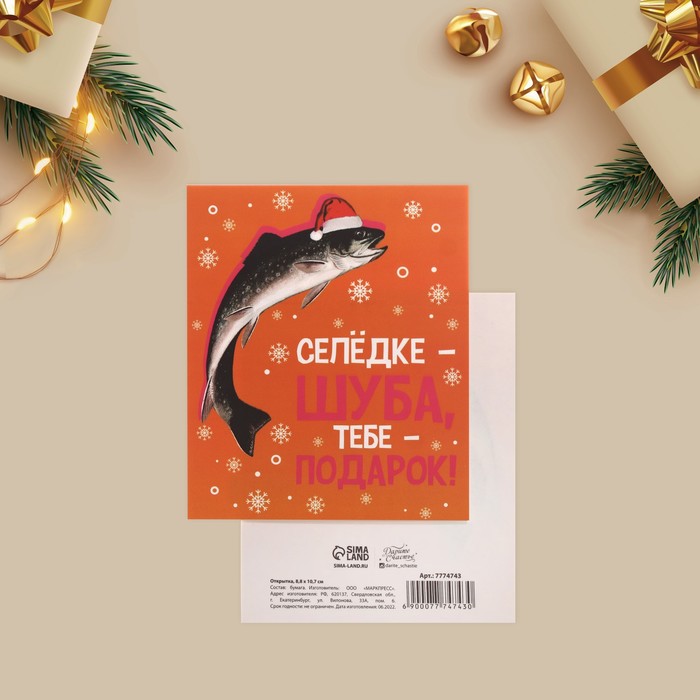 Открытка-инстаграм «Селедке-шуба, тебе подарок», 8,8 х 10,7 см