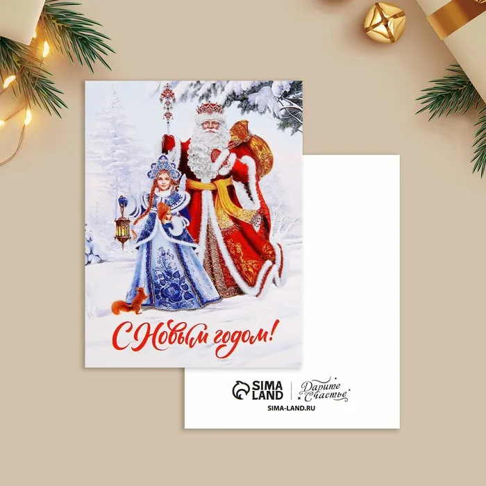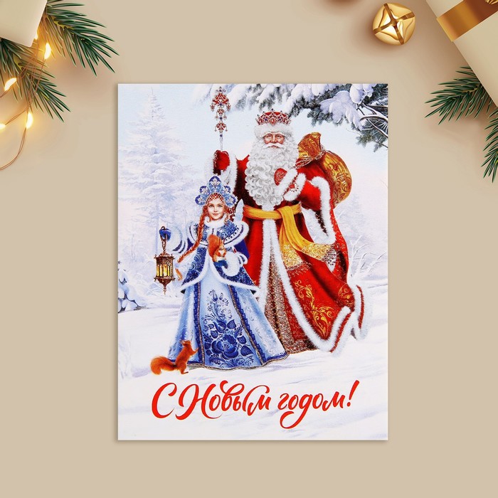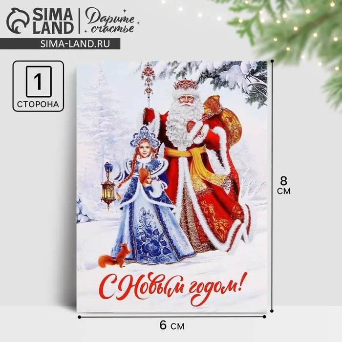 Открытка-мини «С Новым годом!», Дед Мороз и Снегурочка, 6 х 8 см — Характеристики