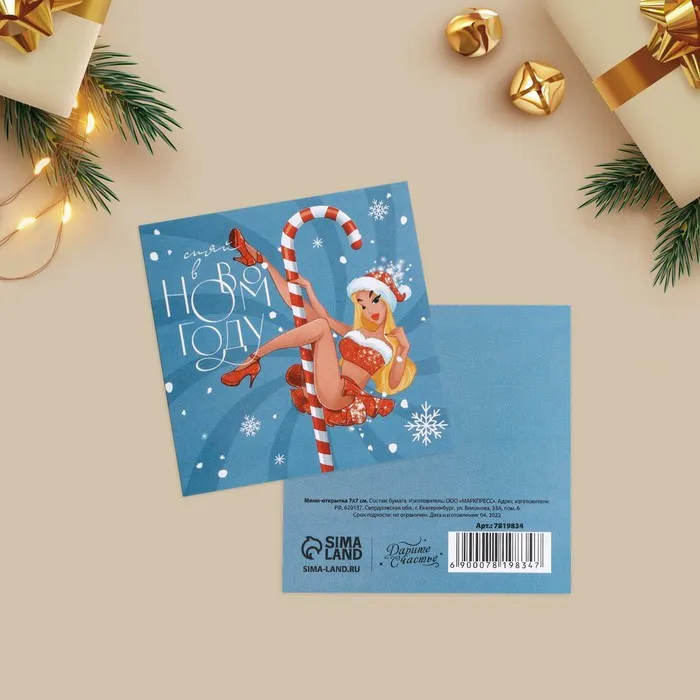 Открытка-мини с новым годом «Игривый новый год», 7 х 7 см — Характеристики