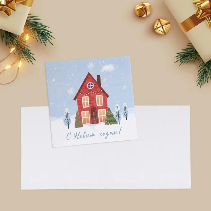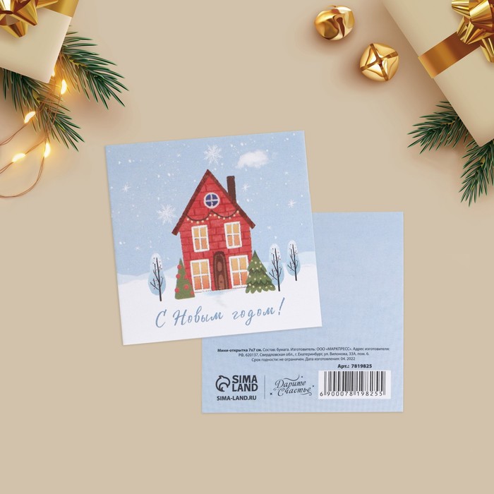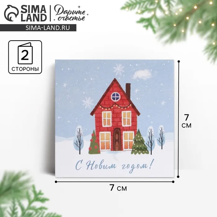 Открытка-мини с новым годом «Милый домик», 7 х 7 см — Характеристики