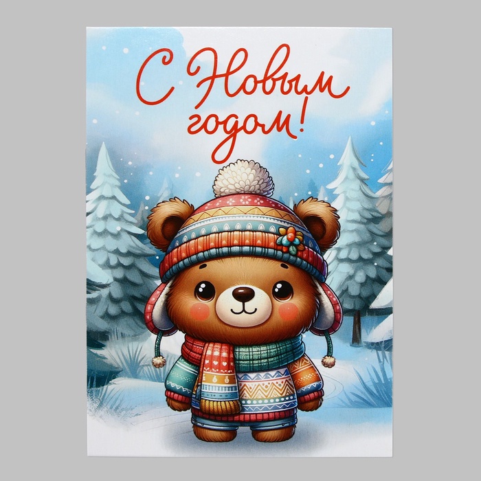 Открытка мини «С Новым годом!», мишка, 7.5 x 10.5 см — Характеристики