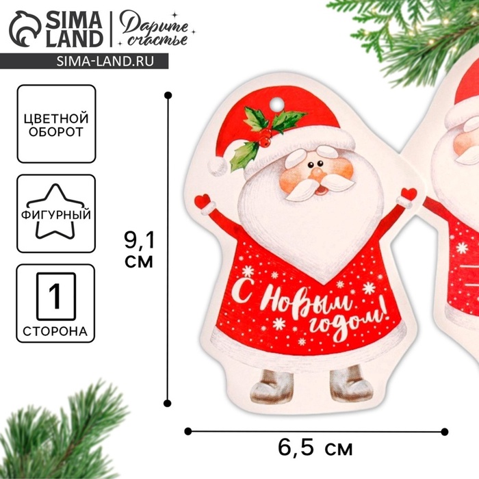 Шильдик новогодний декоративный на подарок «Дедушка Мороз», 6.5 х 9 см