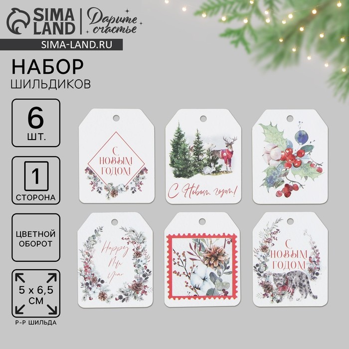 Шильдик на подарок Happy new year, набор 6 штук, 16 х 24 см