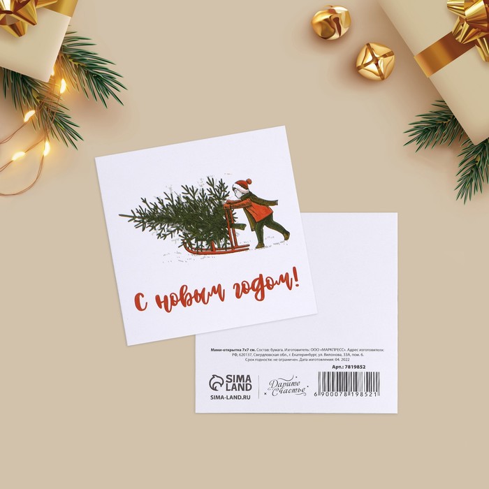 Открытка-мини с новым годом «Праздник в дом», 7×7 см — Характеристики
