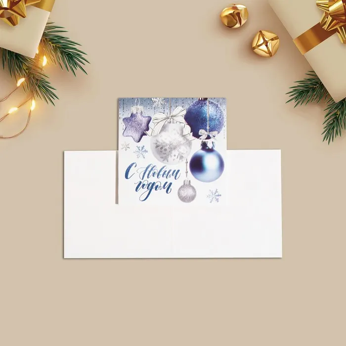Открытка-мини с новым годом «С Новым годом!» ёлочные шары, 7 х 7 см — Характеристики
