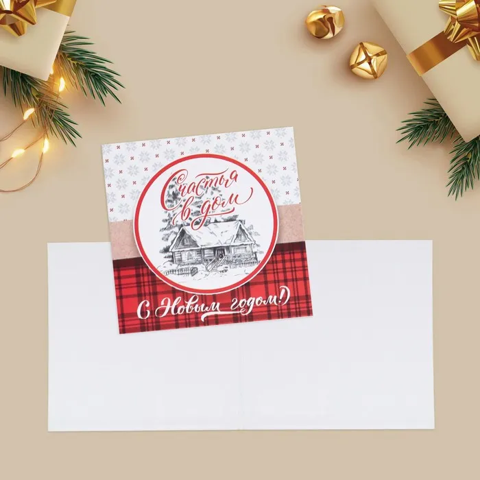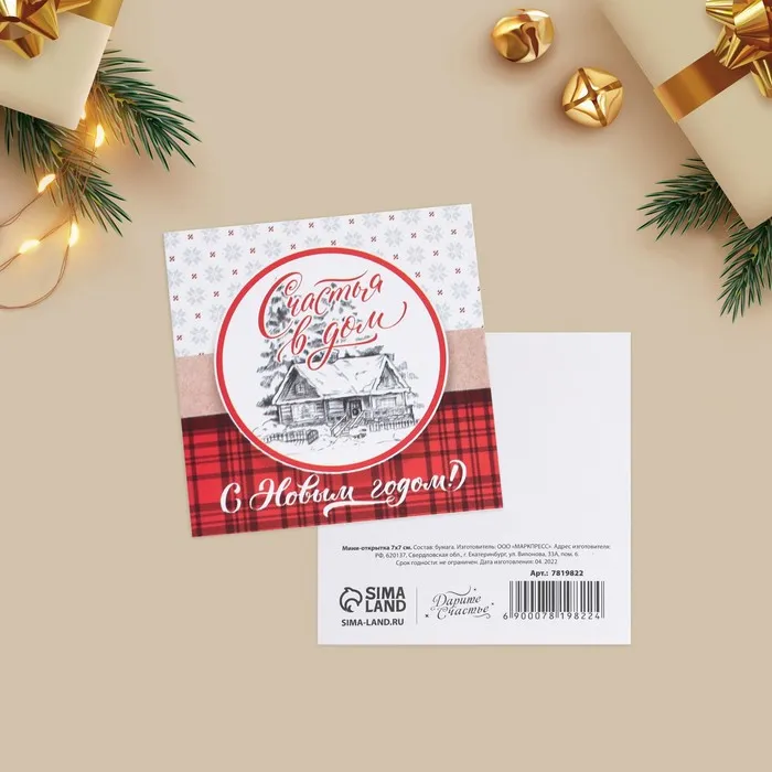 Открытка-мини с новым годом «Счастья в дом», 7 х 7 см — Характеристики
