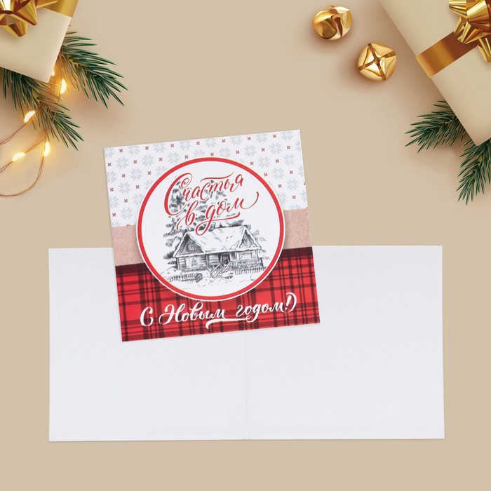 Открытка-мини с новым годом «Счастья в дом», 7 х 7 см