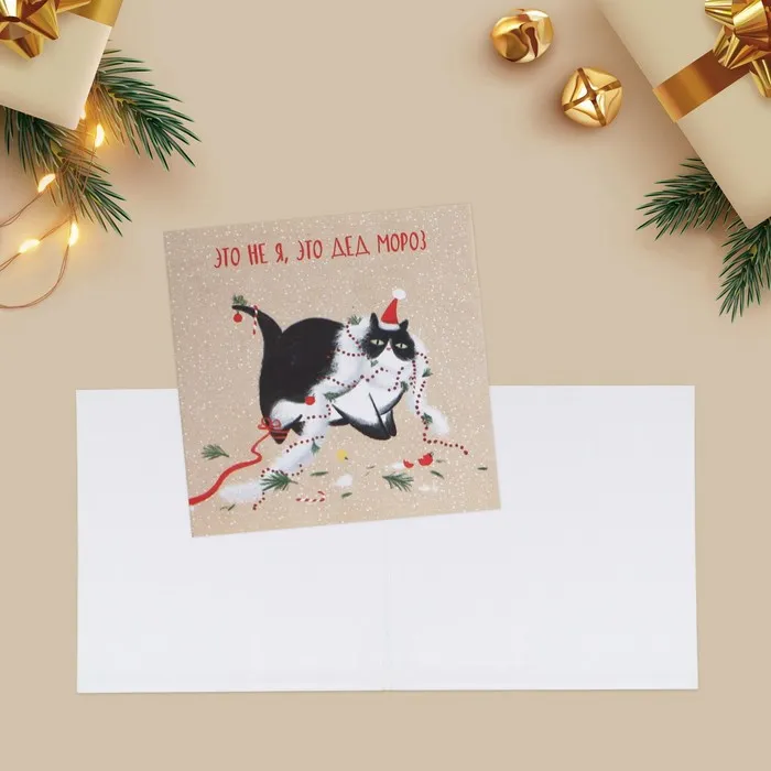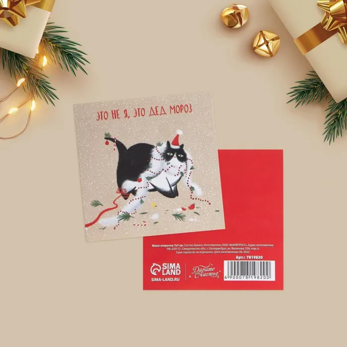 Открытка-мини с новым годом «Шалунишка», кот, 7 х 7 см — Характеристики
