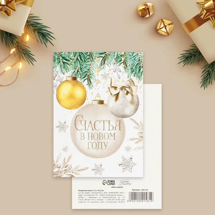 Открытка-мини «Счастья в Новом году», 10.5×7.5 см — Характеристики