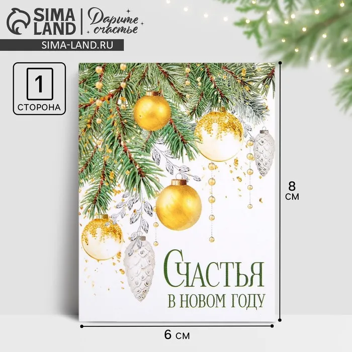 Открытка-мини «Счастья в Новом году», 6×8 см — Характеристики