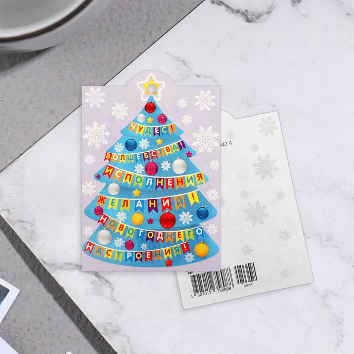 Открытка-шильдик «Новогоднего настроения!» глиттер, 6×8.5 см