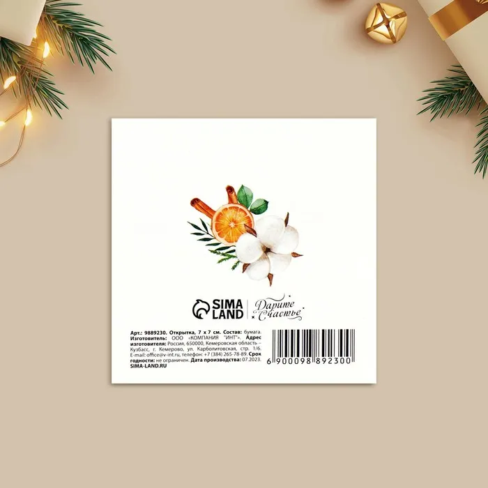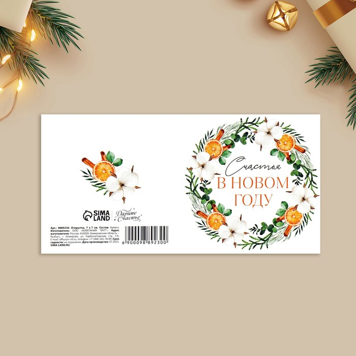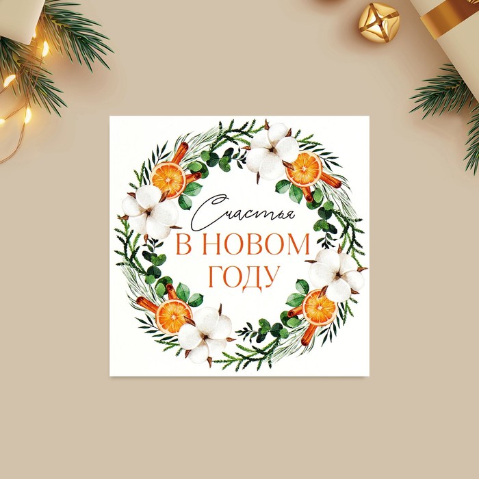 Открытка-мини «Счастья в Новом году», хлопок 7 х 7 см — Характеристики